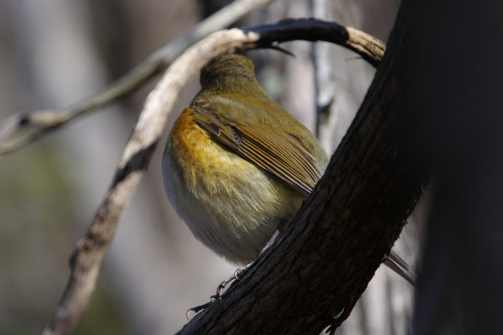 さらっと奥まで行って高い梢に何かいるのを発見。撮ってみて「おぉ、ここで見るのは初めてだ!」